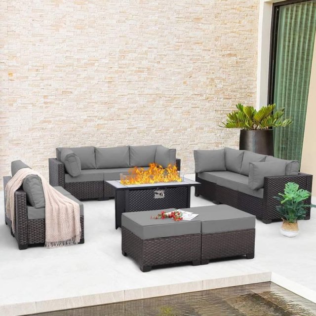 The centerpiece of this set, the round table, features a tempered glass top with an elegant water ripple design, adding a touch of sophistication to your outdoor décor. The table’s unique leg design enhances stability, making it a reliable spot for your drinks, meals, and decorative items.
