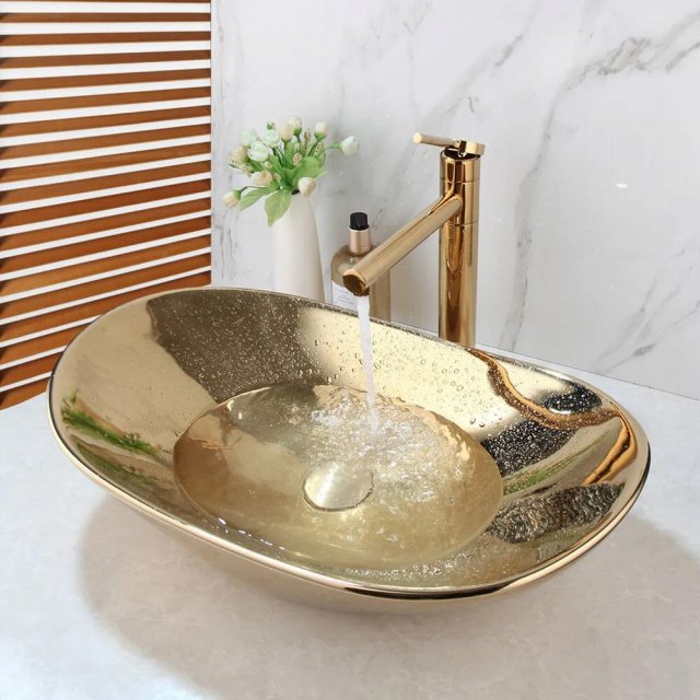 Transform your bathroom into a sanctuary of luxury with our Golden Plated Round Ceramic Bathroom Sink and Brass Faucet Set. This exquisite combination of hand-painted ceramic artistry and gleaming golden-plated brass is designed to add a touch of opulence to any bathroom. Whether you’re remodeling your master suite or upgrading a guest bathroom, this set promises to be a striking focal point, delivering both functionality and style.