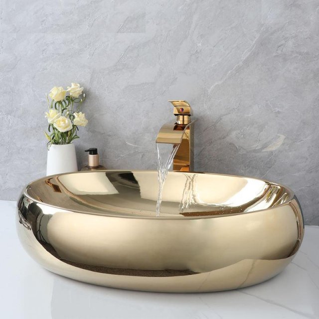 This Golden Plated Round Ceramic Bathroom Sink and Brass Faucet Set is more than just a functional addition to your bathroom; it’s an investment in elegance and quality. The solid brass construction ensures longevity, while the hand-painted ceramic basin adds a unique touch to your decor. This set is ideal for anyone looking to infuse their bathroom with a sense of luxury, whether for everyday use or special occasions.
